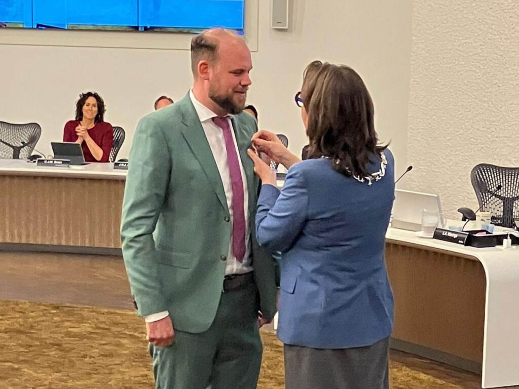 Henk Schraa kreeg al eerder dit jaar zijn lintje opgespeld vanwege zijn langdurige inzet als raadslid in de gemeente Lelystad, in het bijzonder voor zijn werk voor de ChristenUnie.burgemeester Mieke Baltus.